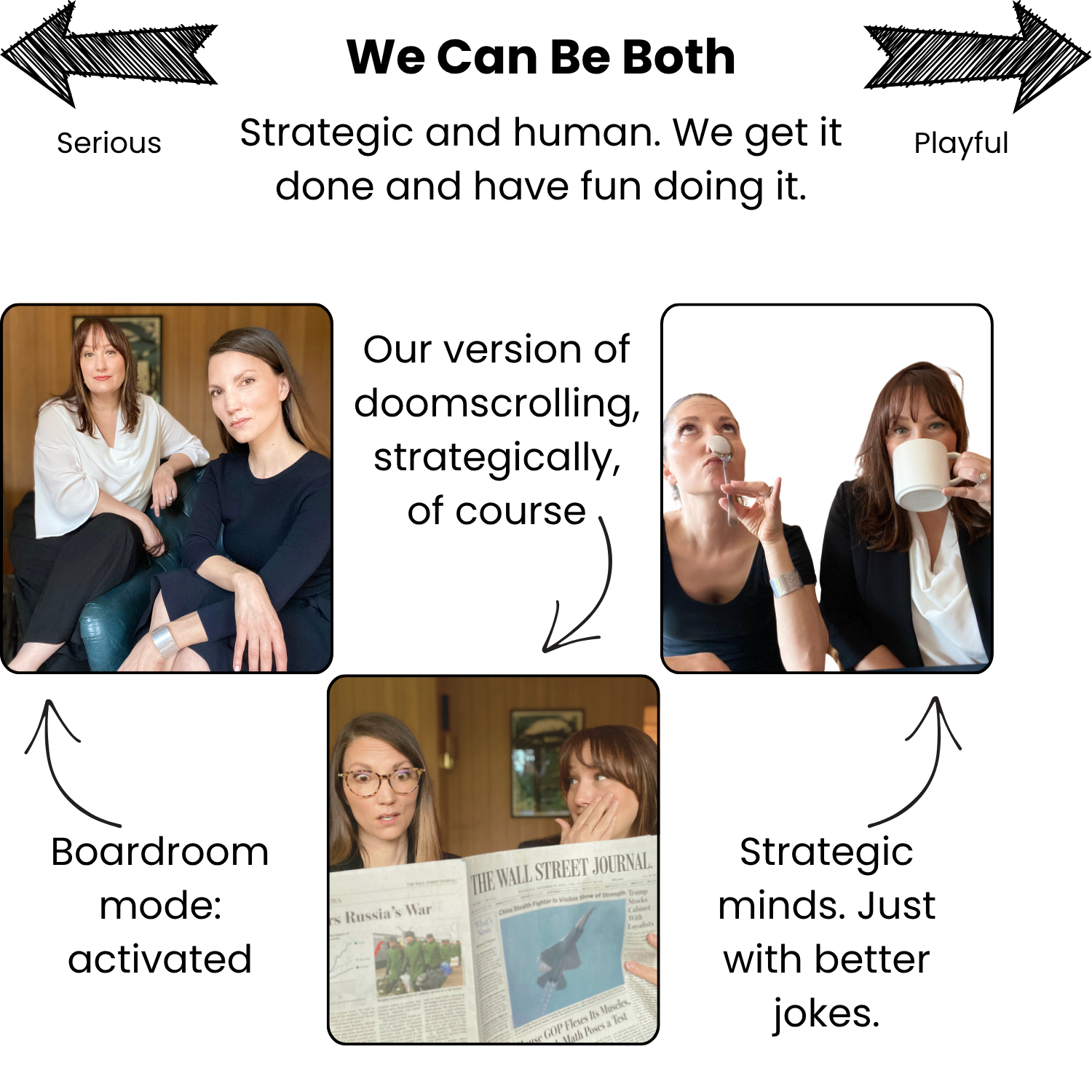 We’re the kind of partners who can lead executive strategy sessions in the morning and make the team laugh by lunch.